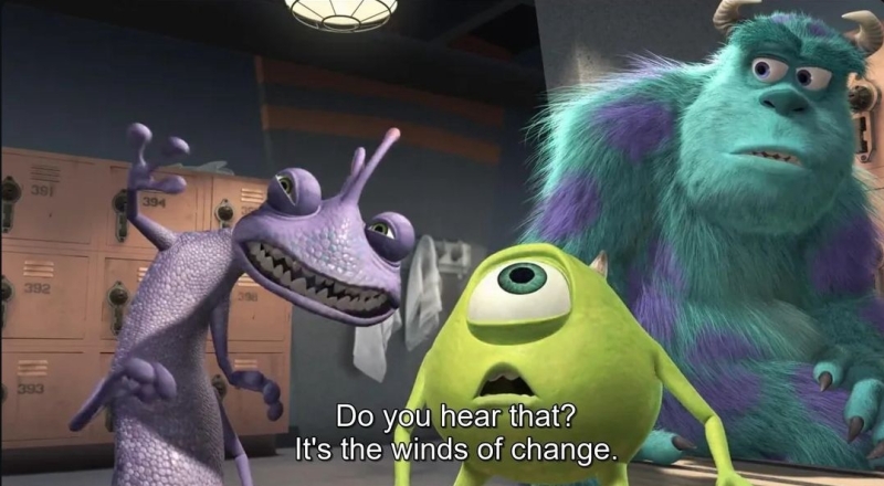 Waarbij het opkomende monster tegen het gaande zeg -en hij legt zijn hand om zijn oor... 'hoor je dat geluid? Het is de wind. De wind van de verandering....'